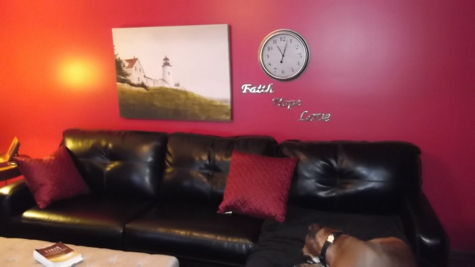 This couch is more modern so, we needed some new wall decor. It's like If you give a Mouse a Cookie. Do you get the reference? The book starts out, "If you give a mouse a cookie.......He will want a glass of milk to go with it." If you buy a new couch, then you will need a new coffee table to go with it. We've made some changes, but we're not finished yet.